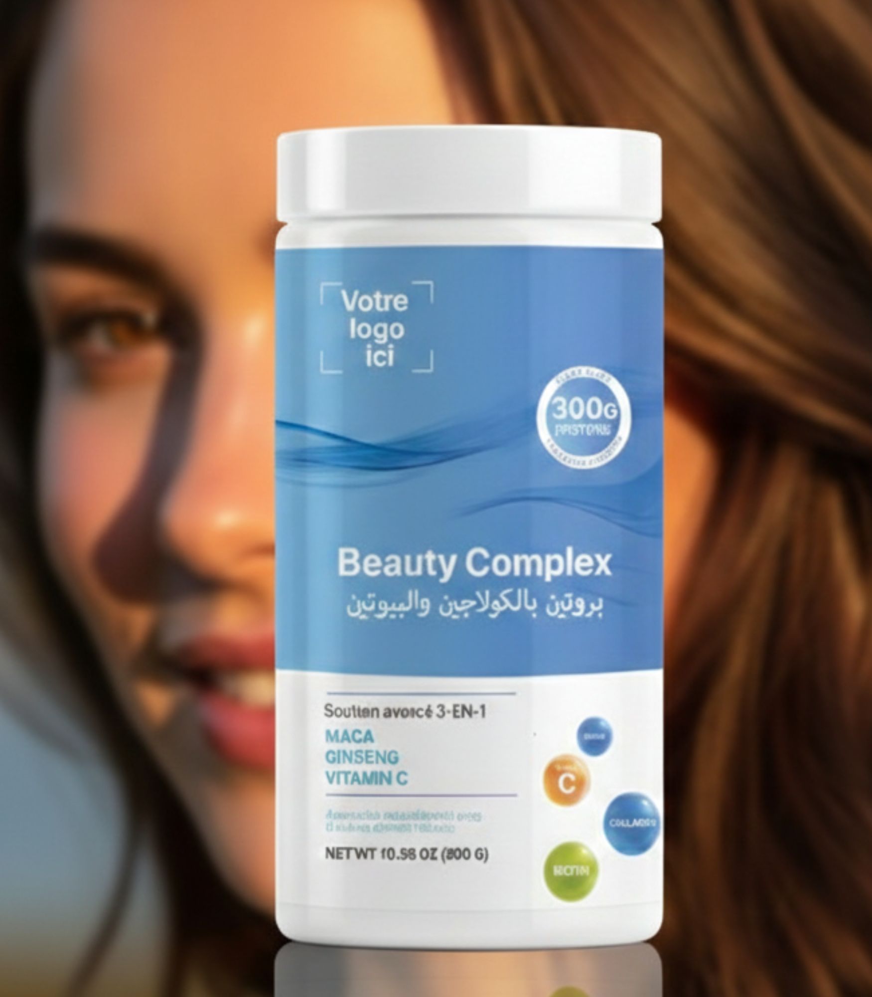 “بروتين Beauty Complex بالكولاجين والبيوتين لتقوية الشعر والأظافر، تحسين مرونة البشرة، ودعم الطاقة اليومية.”