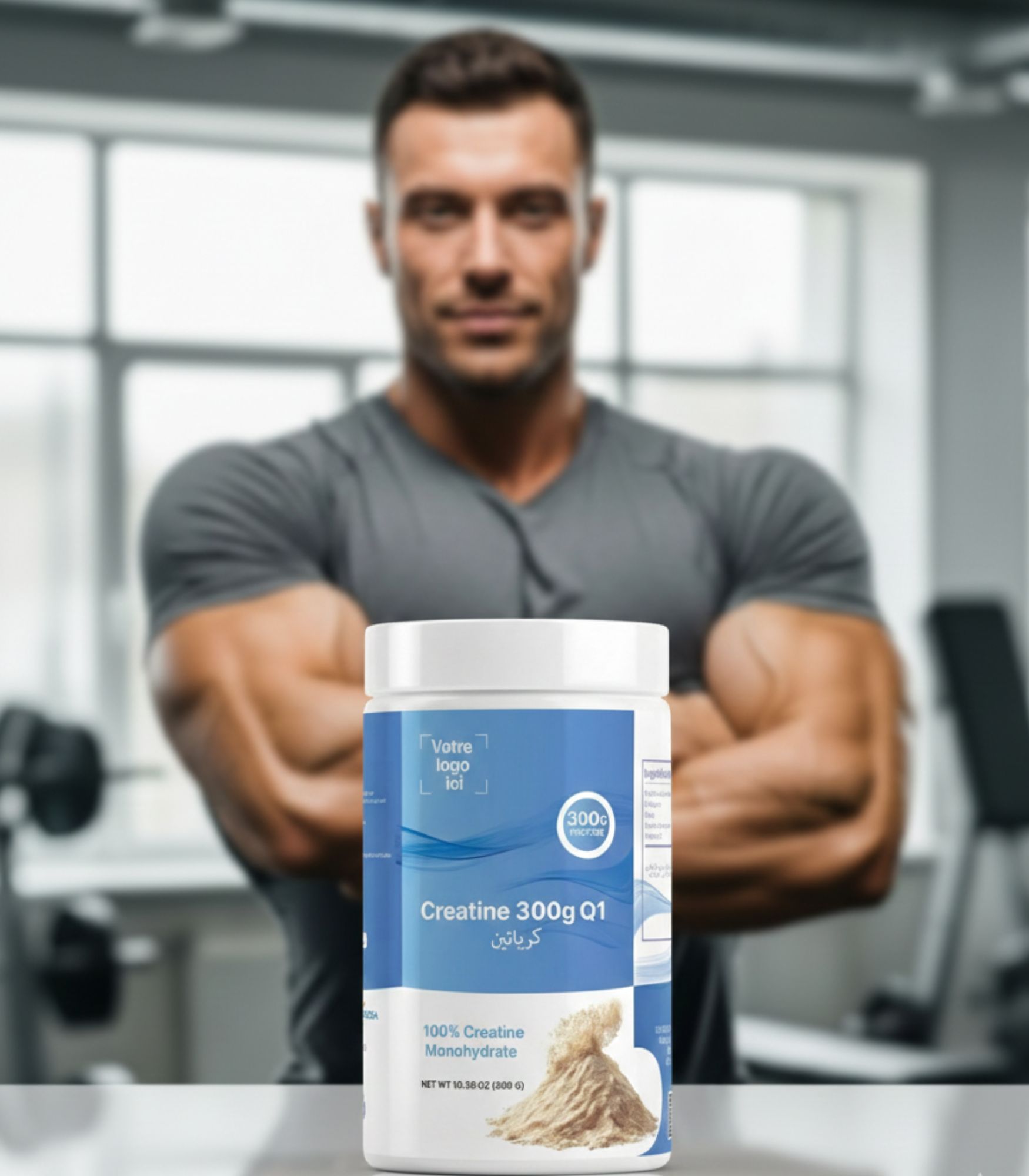 Creatine Q1 مكمل غذائي عالي النقاء يحتوي على 100% كرياتين مونوهيدرات لدعم الأداء الرياضي، زيادة القوة، وتحسين قدرة التحمل العضلي أثناء التمارين الشديدة.