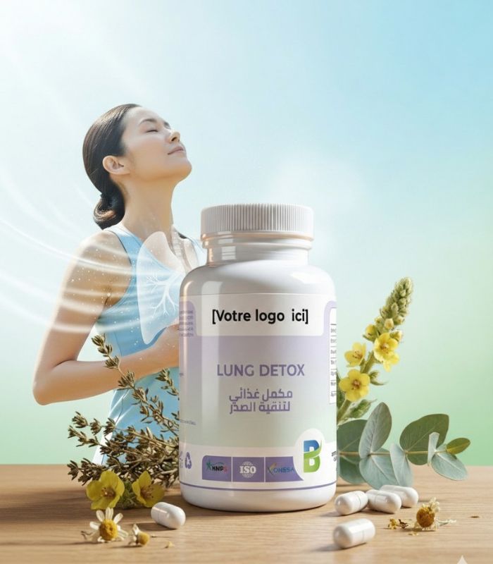 مكمل غذائي طبيعي يهدف إلى تحسين صحة الجهاز التنفسي وتنقية الصدر من المخاط والسموم. يحتوي على مكونات طبيعية تعزز التنفس الصحي وتدعم صحة الرئتين.