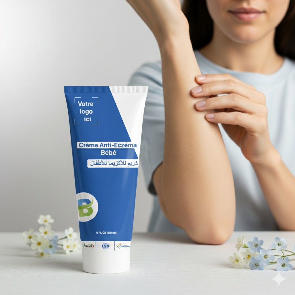 “كريم لطيف وفعّال يخفف أعراض الأكزيما لدى الأطفال، يرطب البشرة ويهدئ الحكة بطريقة آمنة ومناسبة للبشرة الحساسة.”
