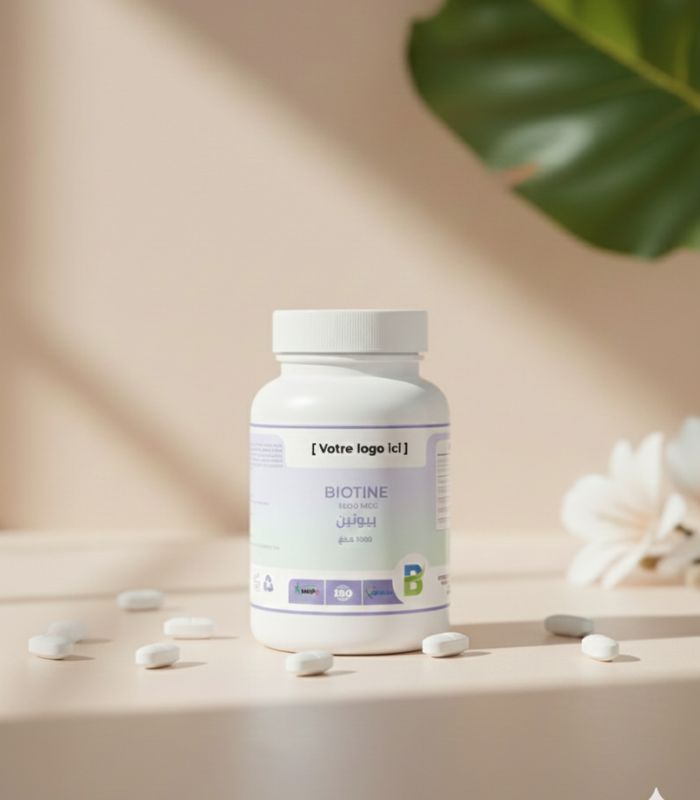 مكمل غذائي يحتوي على البيوتين، المعروف أيضًا بفيتامين B7، الذي يعزز صحة الشعر، الأظافر، والبشرة. يساهم البيوتين أيضًا في دعم عملية التمثيل الغذائي وتحويل الطعام إلى طاقة، مما يجعله مثاليًا للحفاظ على صحة الجسم العامة. يمكن استخدامه كجزء من روتين العناية اليومي بالجمال والصحة.